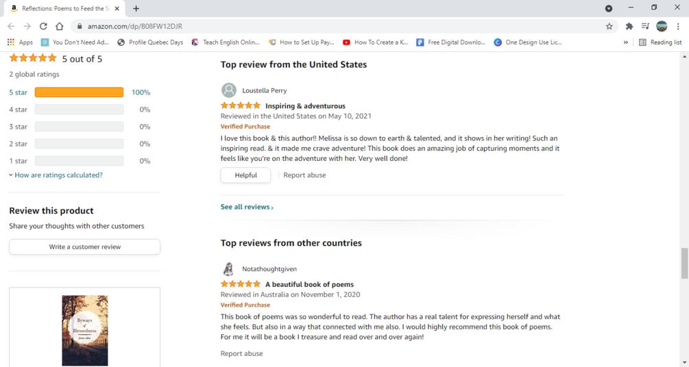 Escape and find solace with this collection of beautifully written poems, guaranteed to feed your mind and soul! Five star rated on Amazon!